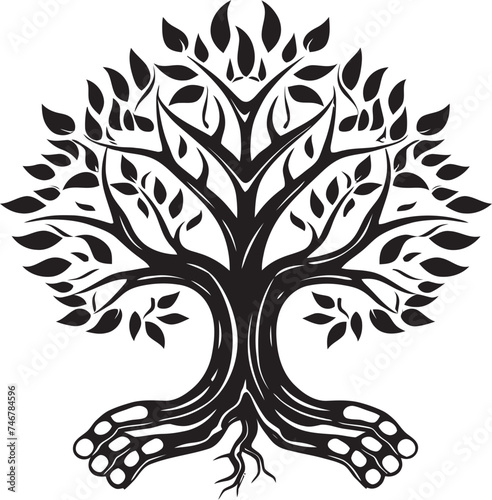 Botanic Touch Plant Emblem Badge Leafy Hands Vector Logo Badge