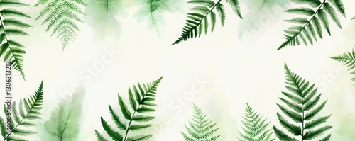 Botanical Fern Fronds Lush Green Watercolor Illustration Design Serene Forest Theme Artistic Style