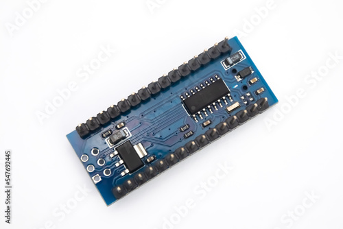 Bottom view of a developing board microcontroller module. This part is used for hobbyists to DIY electronic materials.