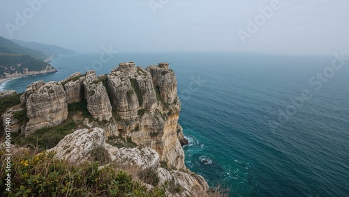 Boulders perched atop a coastal promontory overlooking the Black Sea