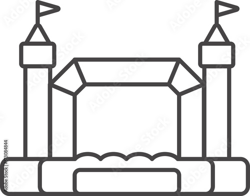 Bouncy inflatable castle. Trampoline pictogram for jumping game. Outline illustration