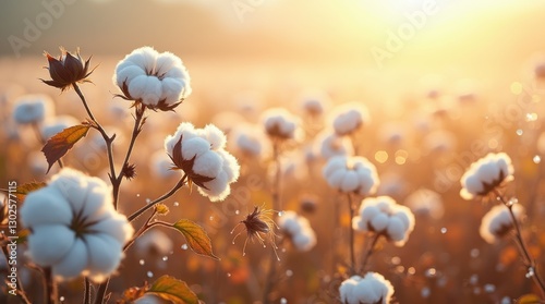 Boundless Field of Cotton Wool Plants in Bloom