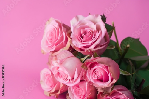bouquet of pink roses. mother's day. pink background. generative ai.