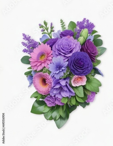 Bouquet of purple and pink flowers on a white background. Generative AI.