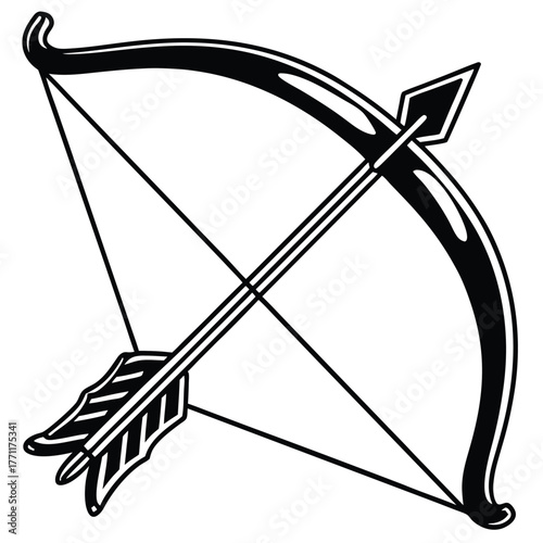 Bow weapon icon silhouette isolated on transparent background