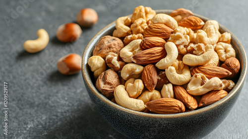 Bowl of Mixed Nuts, almonds, cashews, walnuts, hazelnuts, bowl of nuts