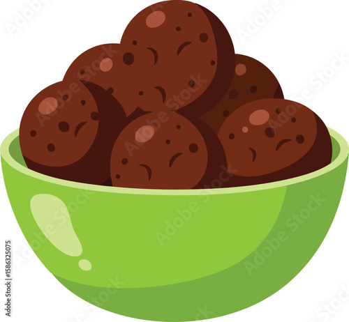Bowl of round chocolate truffles dessert sweets in green ceramic container vector illustration