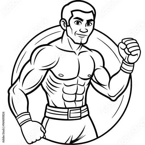 Boxer ready to fight on white background. Outline art.