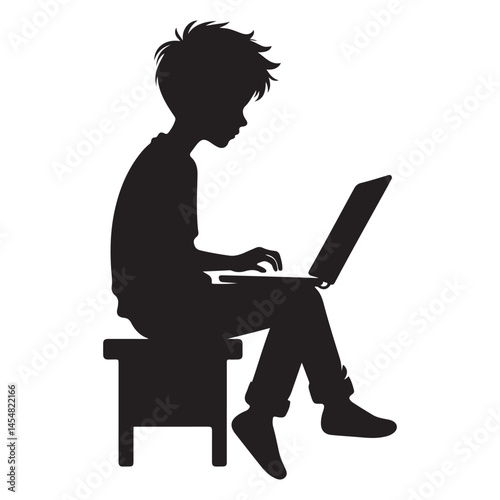Boy Silhouette Using Laptop Studying Vector Creative Illustration Art