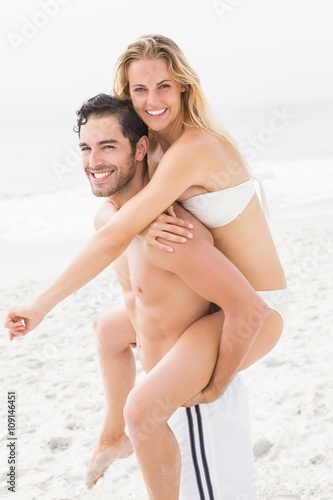 Boyfriend giving piggy back to girlfriend
