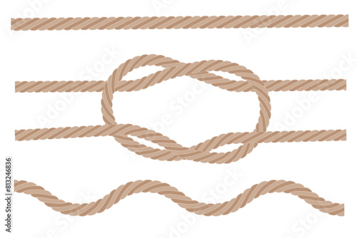 Braided rope knot. Beige twisted cord. Seamless vector lines. Nautical design element.