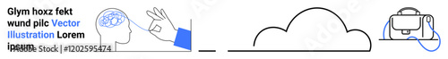 Brain with gears and hand, cloud symbol, and bag element. Ideal for education, productivity tools, remote work, project management, digital learning, cloud computing, business plans. Landing page