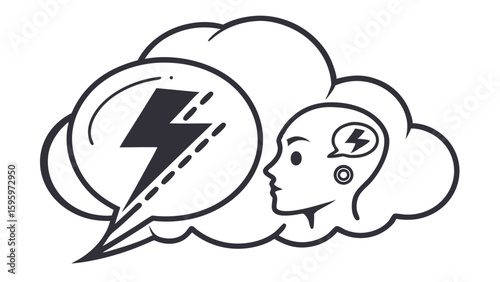 Brainstorming Concept Womans Head with Lightning Bolt Idea.