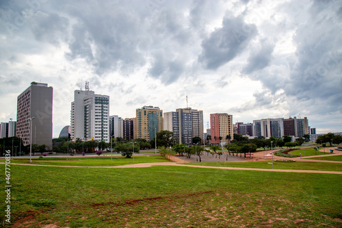 Brasília DF, Brazil, November 7, 2021: Hotel sector near the TV Tower, with the city park in the background, in the central region of the city of Brasília. General vision