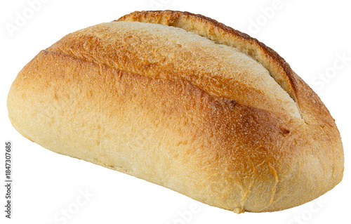 Bread. Fresh white bread loaf with crispy golden crust. Traditional bakery product, homemade wheat bread for food design, cooking, grocery, breakfast, baking, sandwich preparation. Rustic bakery