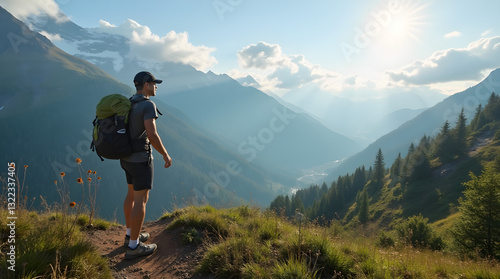 Breathtaking Mountain Valley View Hiker Backpacking Sunny Day