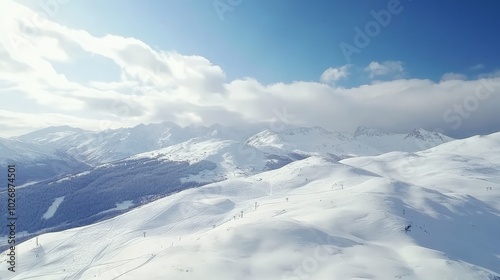 Breathtaking Snowy Mountain Landscape with Cloud-Covered Peaks