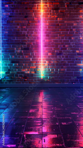 Brick wall and neon lights background