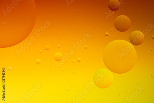 Bright abstract, yellow background with flying bubbles