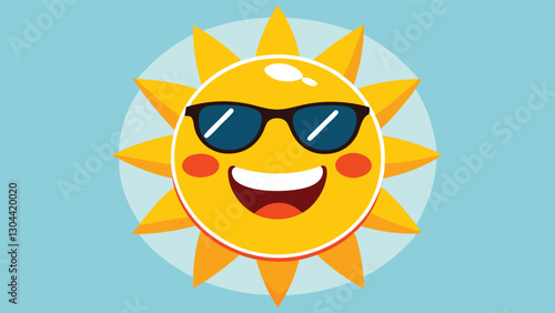 Bright and cheerful cartoon sun wearing sunglasses radiating happiness in a clear blue sky during a sunny day