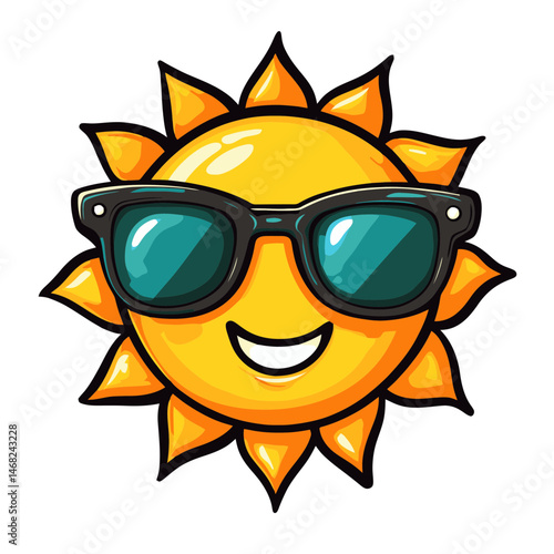 Bright and cheerful sun wearing stylish sunglasses in a simple cartoon design perfect for summer vibes