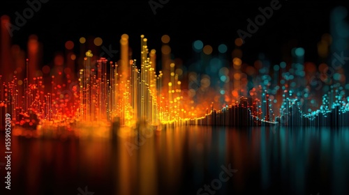 Bright and colorful sound wave patterns rise and fall, depicting audio frequencies. The vibrant colors blend against a dark backdrop, creating an energetic atmosphere.
