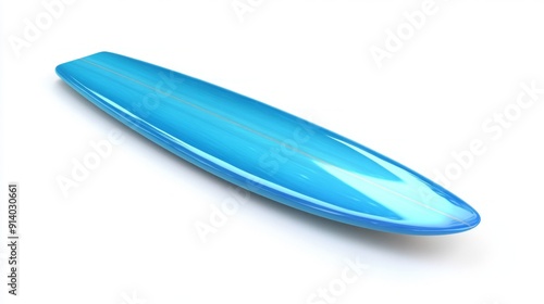 Bright Blue Realistic Surfboard 3D Render - Isolated on White Background