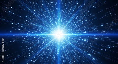 Bright blue starburst exploding in deep space