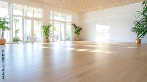 Bright Empty Room with Hardwood Floor and Large Windows