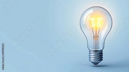 Bright Light Bulb Glowing on Blue Background for Creative Concepts