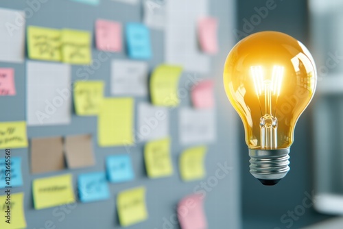 Bright Light Bulb Illuminating Ideas on Sticky Notes Background