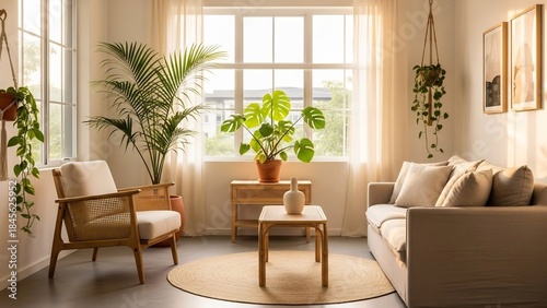 Bright Living Room with Plants and Natural Light.
