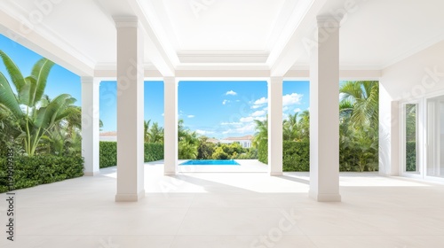 Bright Modern Interior with Pool View and Tropical Landscape