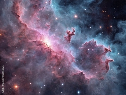 Bright Nebula Surrounded by Colorful Cosmic Clouds in Deep Space