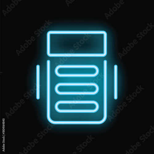 Bright neon icon of a mobile phone showing a list on a dark background