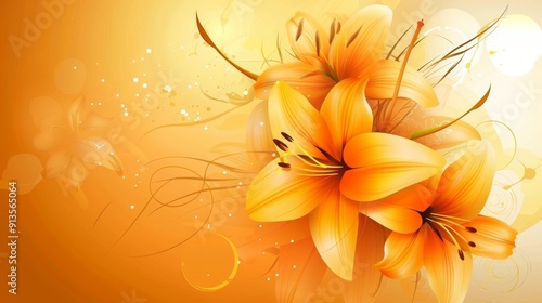 Bright orange backdrop with intricate yellow floral pattern, ample blank area for text placement