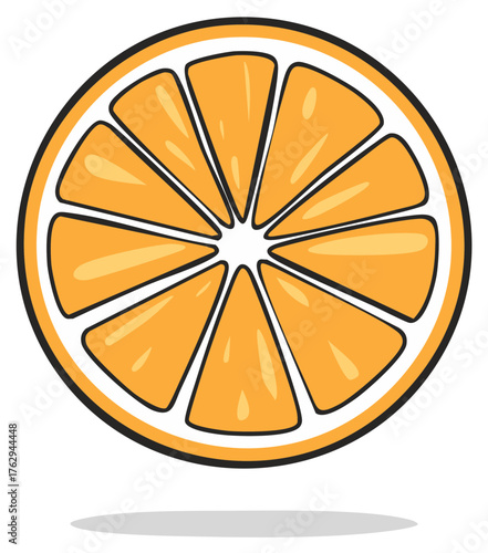 Bright Orange Citrus Slice Illustration with Bold Black Outline and Refreshing Fruit Details