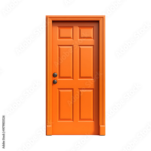 Bright orange entry door showcasing raised panel details on transparent background