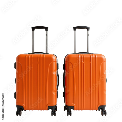 Bright Orange Suitcases with Telescopic Handles on Transparent background