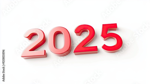 Bright Red 2025 Lettering in a Modern Render Style on a Clean White Background
