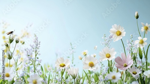 Bright Spring Meadow with Wildflowers and Insect meadow bright wildflowers insect summer field bloom