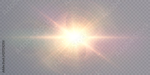 Bright sunlight light effect with warm glow of shimmering rays and glare. Vector light for design and illustrations