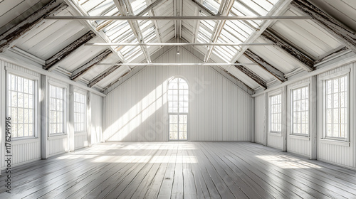 Bright White Loft Interior with Skylights and Windows
