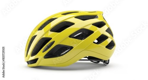 Bright Yellow Bicycle Helmet with Vents Isolated on White Background.