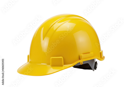 Bright yellow construction hard hat viewed from the side isolated on a clean transparent background symbolizing safety and work