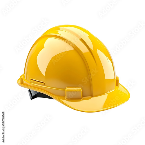 Bright Yellow Construction Hard Hat with Reflective Stripe on White Background