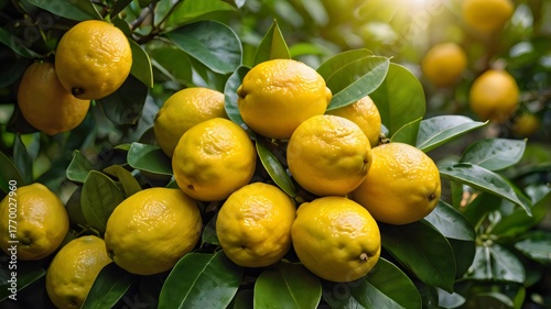 Bright Yellow Lemons Clustered Among Green Leaves – Fresh Citrus Fruits, Natural Summer Harvest, Healthy Vitamin C Snack, Organic Produce