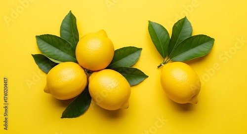 Bright Yellow Lemons with Green Leaves on a Sunny Background.