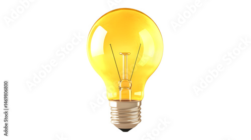 Bright Yellow Light Bulb Illuminating Isolated White Background
