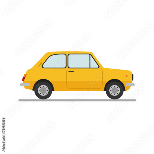 Bright Yellow Small Retro Hatchback Car Side View Flat Design Illustration Isolated on White Background